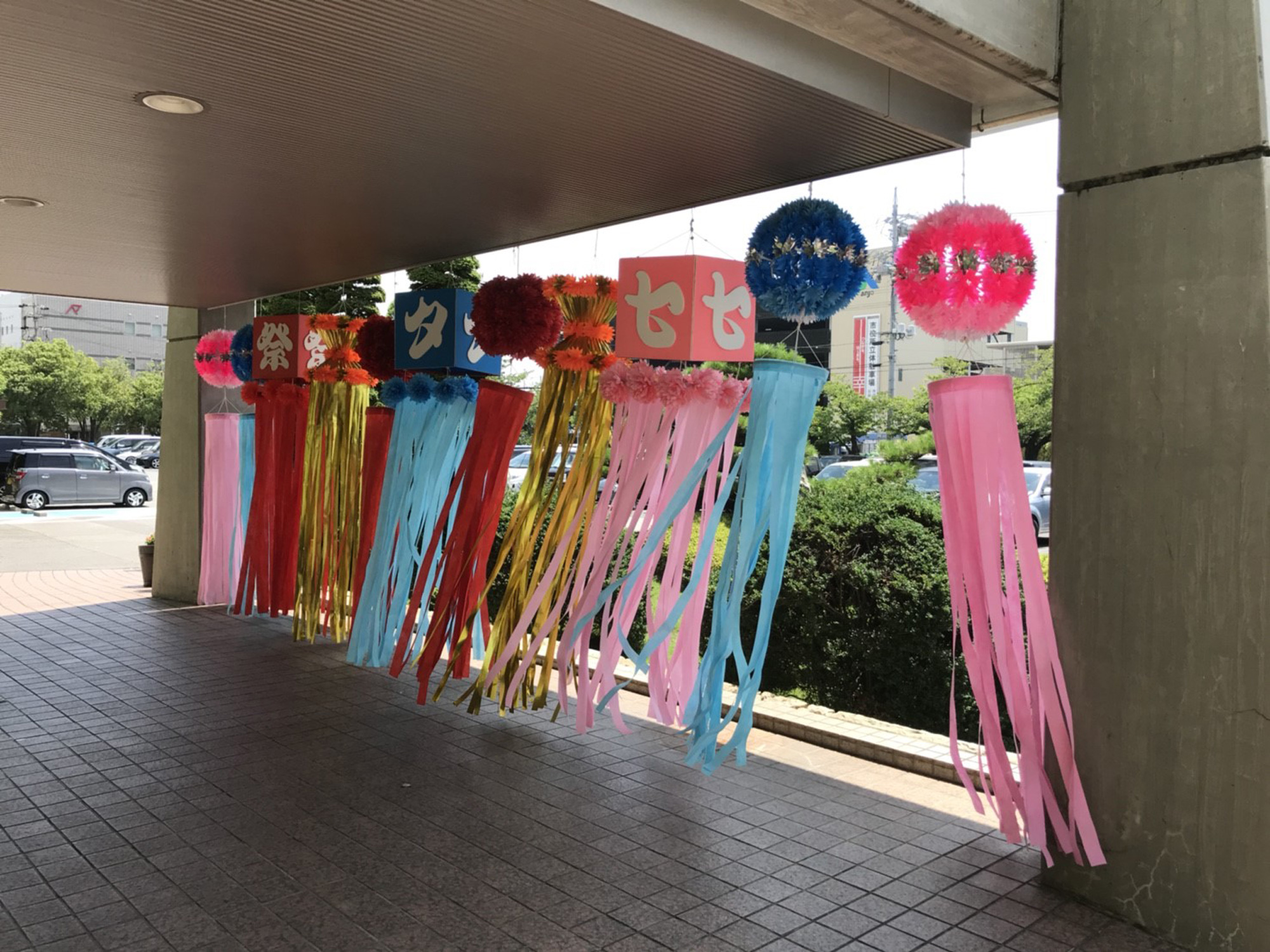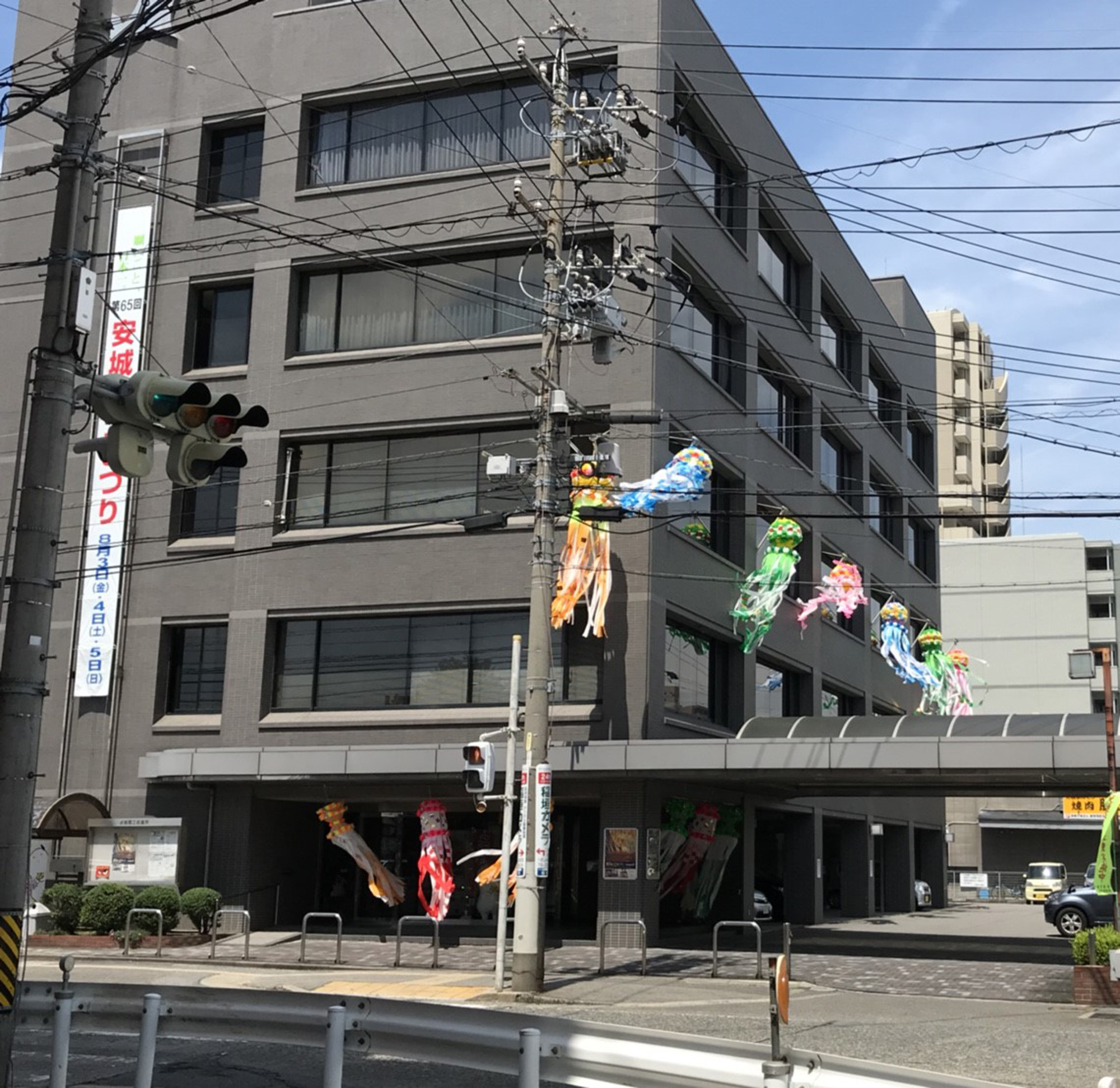 8月の3日(金)・4日(土)・5(日)に行われる「安城七夕まつり」にむけ、市内では飾り付けがはじまりました。
