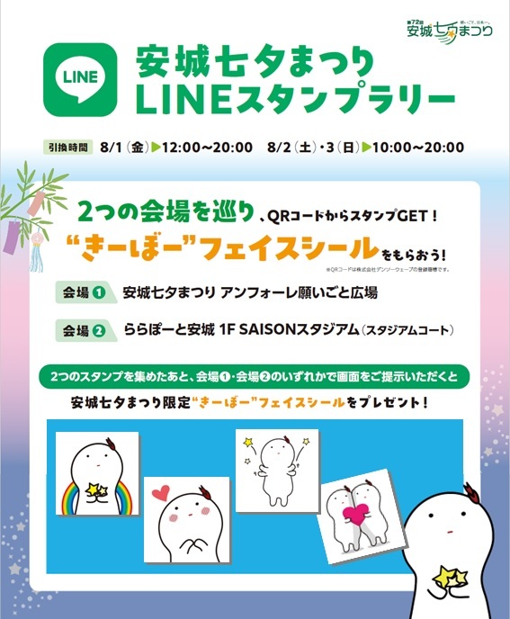 \安城七夕まつりLINEスタンプラリーに参加して、“きーぼー”のフェイスシールをもらおう!/